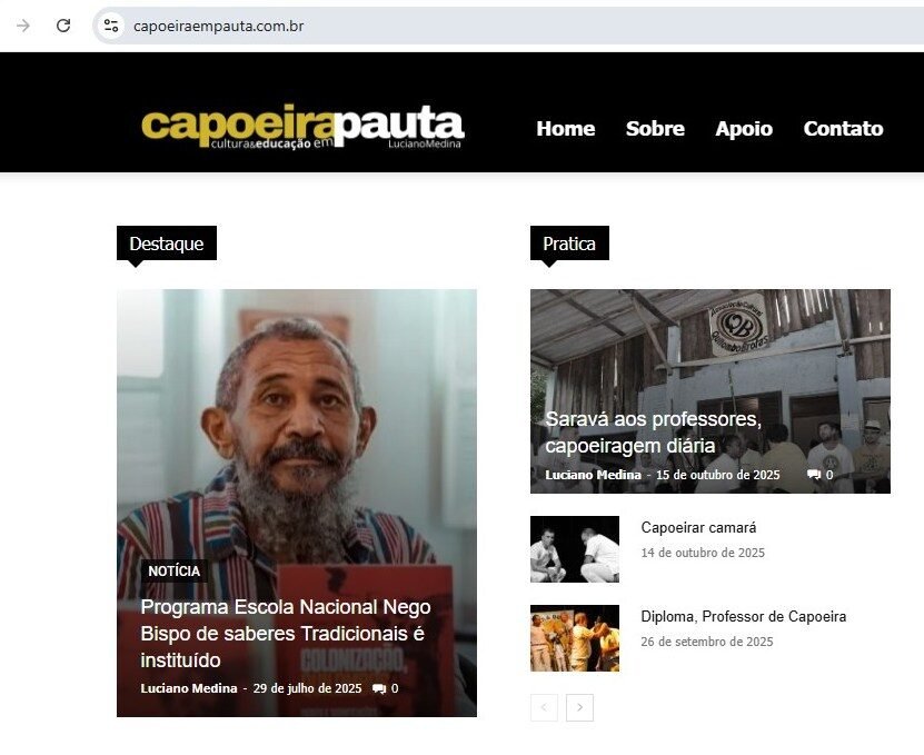 Capoeira em Pauta é um blog jornalístico especializado na cobertura e fomento da prática ensino e valorização da capoeira em todas as suas dimensões. Idealizado pelo professor de capoeira, mestre em educação e jornalista profissional Luciano Medina Neto, e com apoio e parceria com o Ponto de Cultura Capoeira de Valor, o objetivo é publicar e repercutir reportagens, conversas e saberes da capoeiragem. Operar o jornalismo a partir de veiculação de notícias e destaques de interesse público de acordo com os princípios e técnicas embasam a proposta editorial
