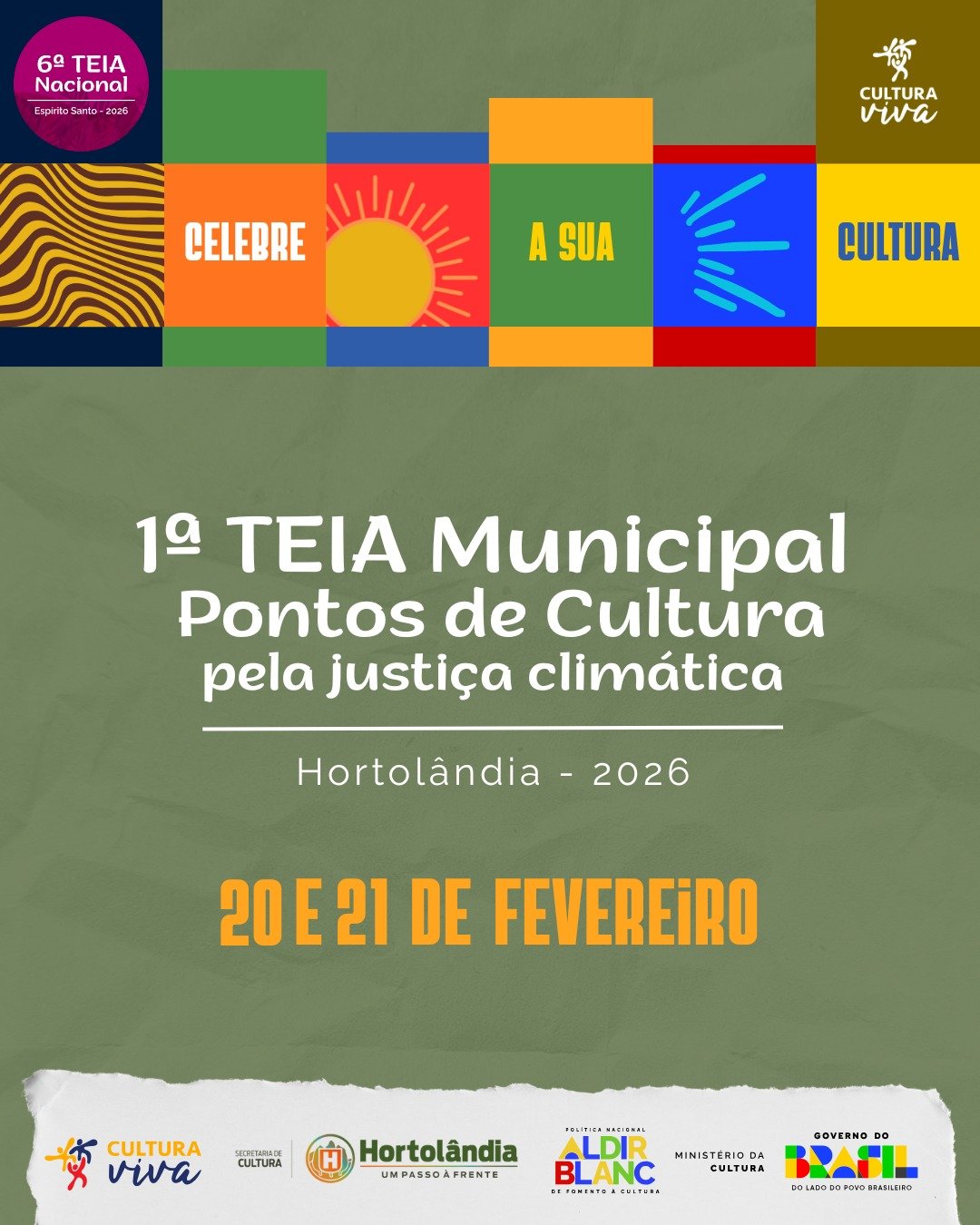 Hortolândia avança com a sua Rede Cultura Viva. A Prefeitura promove a primeira edição do evento Teia Municipal de Pontos de Cultura, nesta sexta-feira (20/02). O evento será, às 18h, no Teatro Elizabeth Keller de Matos, que fica dentro da Unidade Cultural Arlindo Zadi, localizada na rua Graciliano Ramos, 280, Jardim Amanda.